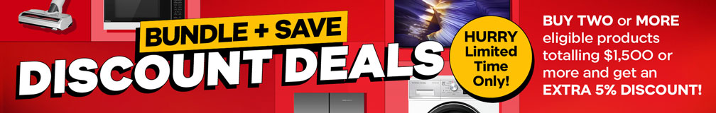Whether you’re after a sleek stainless steel washing machine, a pristine white clothes dryer or stylish laundry pairs, we have your laundry appliance needs covered. Choose products from the latest technology, high energy and water efficiency from a wide selection of top loaders or front loader washing machines, and sensor, condensor and heat pump dryers. Plus we range Steam Irons, Handheld Steamers and Ironing Boards to complete your list of laundry appliance essentials.
