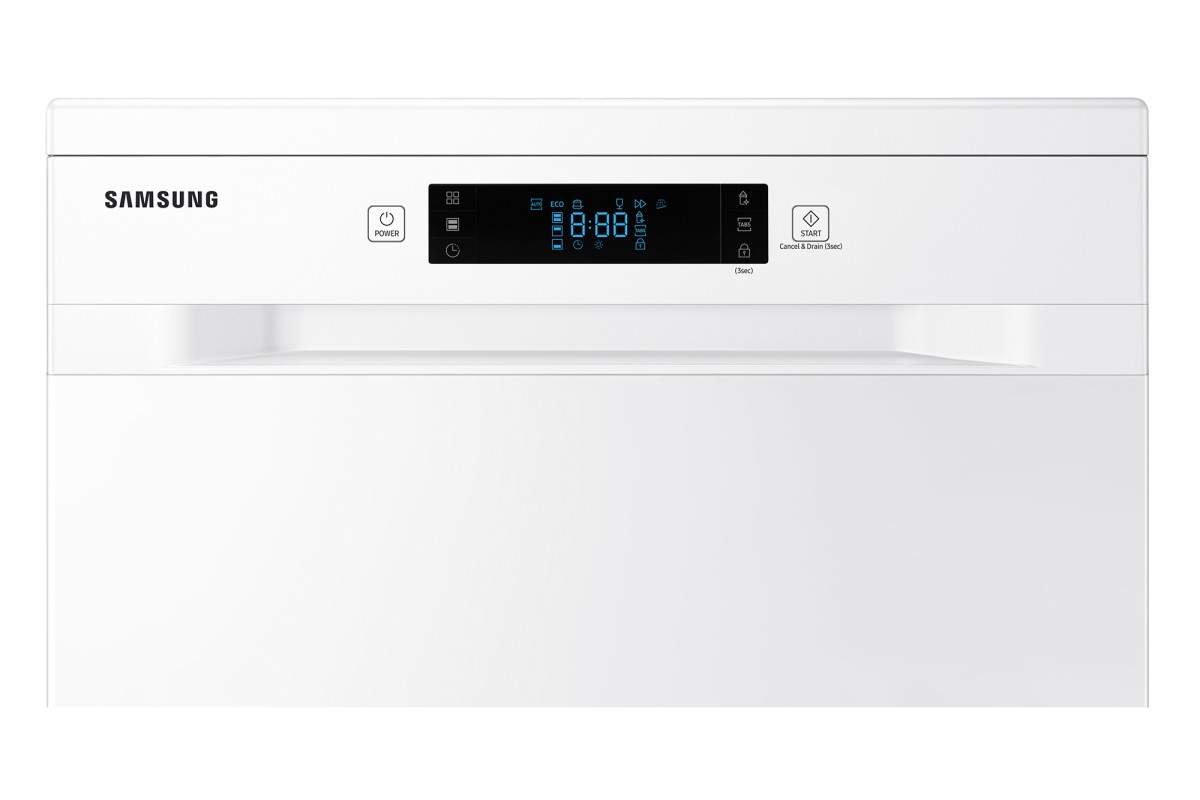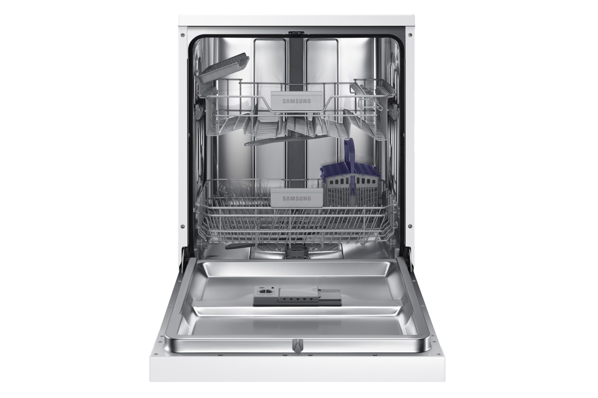 A freestanding dishwasher comes with a fitted, moulded front door in a white, black or stainless steel finish and offers features like anti-flood protection for added peace of mind.